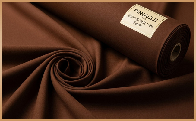 The PINNACLE – P/W – 65:35 – SUPER 110’s fabric is a suiting cloth that blends Polyester (P) and Wool (W) in a 65:35 ratio, offering the perfect balance between luxury and durability. Designed for professionals, this fabric delivers the soft elegance of fine wool paired with the strength and easy-care properties of polyester.